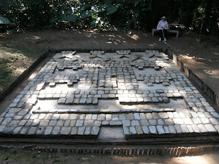 The so-called Classic period Mayan cities came later (400-900 A.D.) and seem less formally organized. Palenque actually doesn't have an overall, clear plan. The palace is in the center, dominating the plaza, but the city is built along the base of a ridge, and a number of temples line up along that ridge. Other temples are arranged around the palace.
